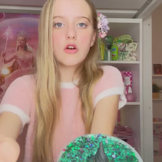 A gorgeous green and black slime that sparkles and shines! It has loads of crackly ASMR and inflates a ton! The perfect way to celebrate your favorite movie