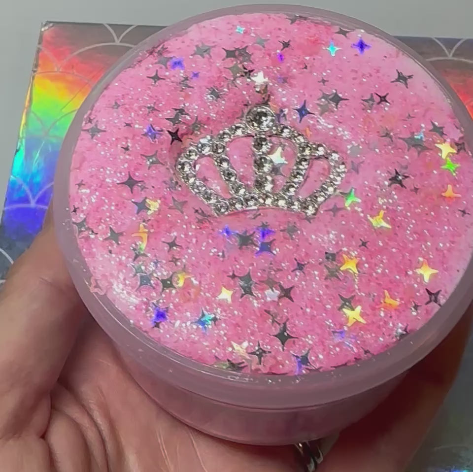 A soft plush slime in the prettiest pink! Add the silver glitter and beautiful crown and you have a slime fit for Oz!